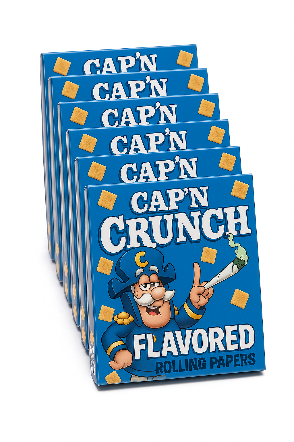 Collab with local dispensaries to promote limited edition Cap’N Crunch flavored rolling papers, THC cereal bars, and gummies.